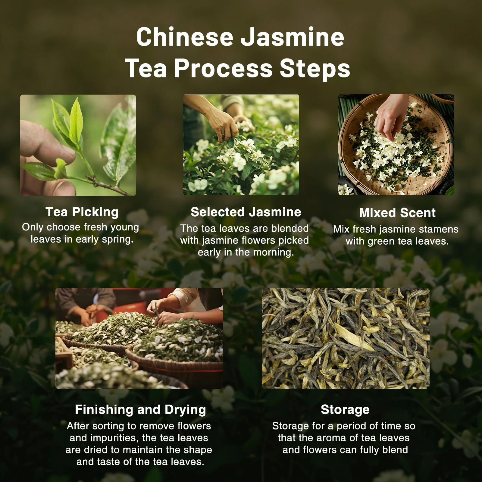 - Scenting Process: Yunnan black tea serves as the base, while jasmine flowers from Hengzhou, Guangxi, are used for scenting. The traditional scenting process is repeated three times, resulting in a tea where the floral aroma and tea fragrance are perfectly balanced.